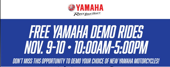 Come test ride your favorite Yamaha! The Yamaha demo truck will arrive with a full lineup of thrilling Yamaha street bikes gassed up and ready to ride. Here's the perfect opportunity to get a first-hand look and feel of what it's like to ride Blue.